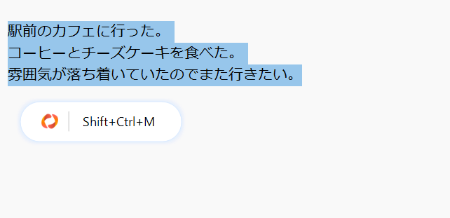 入力済みの文章を範囲選択すると表示されるアシストアイコンにしたがって、Shift+Ctrl+Mキー*を押します。