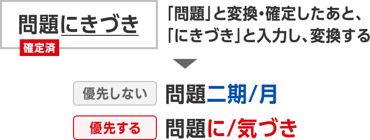 UP助詞から入力しても適切に変換