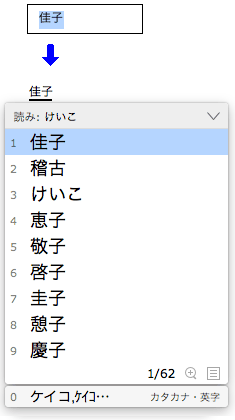 【 佳子(けいこ)→美子(よしこ)に変換する 】
